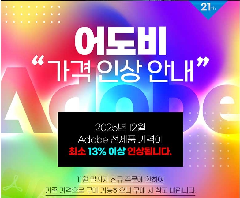 2025³â 12¿ù 01ÀϺÎÅÍ- Adobe Á¦Ç° °¡°Ý ÀÎ»ó ¿¹Á¤ ¾È³»